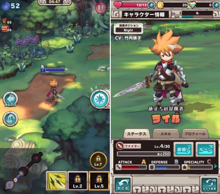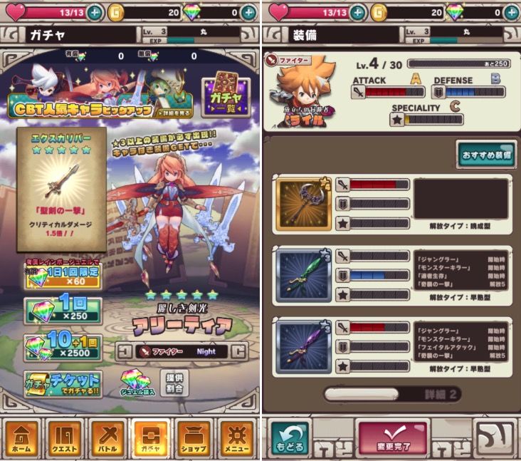 另一方面,它沿袭了日本游戏惯用的养成系统和扭蛋模式,而非国内常见的符文系统。你可以用战斗获得的经验素材来升级角色,而装备系统取代了一般的地图内商店。新角色则需要用钻石获取。