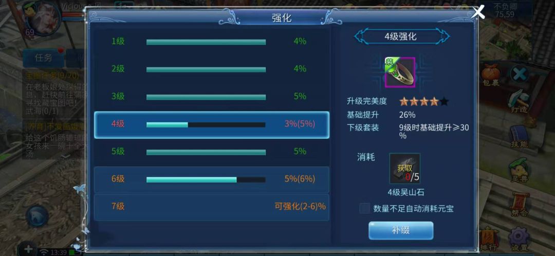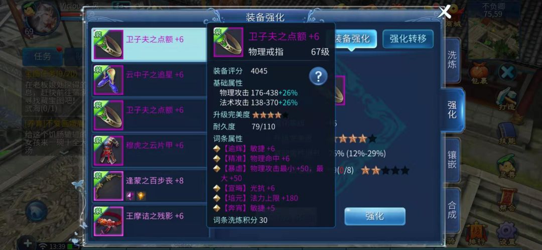 2.2成套的强化还会带来额外的属性加成,而每一级的强化都是有上下限的,如果没满可以进行补缀,套装也会有强化完美度的要求。(新区九套648即可,当然这是最亏的方式,月卡最舒服但时间久一点~)