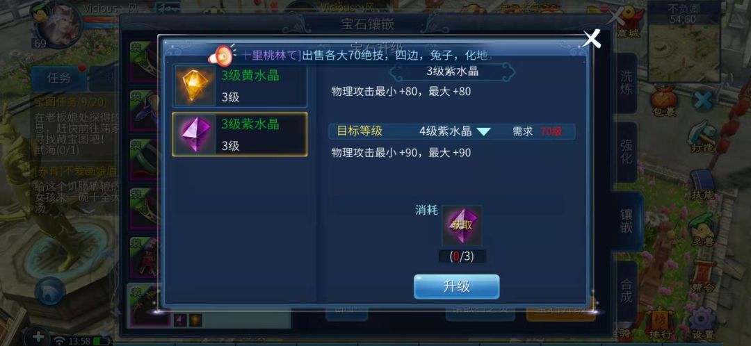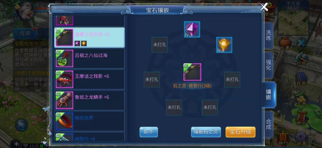 可以使用宝石升级来升级所镶嵌宝石,每次所需材料为n-1数量的同类宝石(升3级2颗,升4级3颗)宝石卸下后会转化为1级绑定宝石