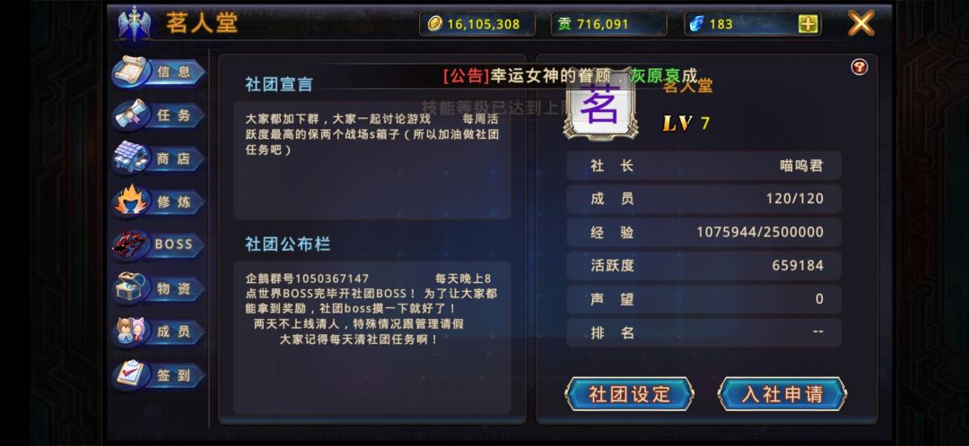 这是六级公会的,对于想快速提升战斗力的氪金玩家来说,茗人堂是你们的不二之选,每天十二个以上的社团任务,也是各位月卡党或者白嫖党的读音。
