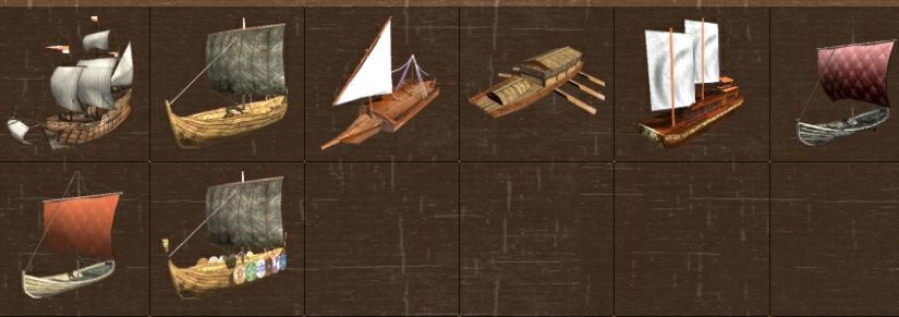 添加12件头盔,7件盔甲,7匹战马,5艘新的船只