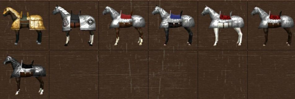 添加20具马匹,14件头盔,7件铠甲