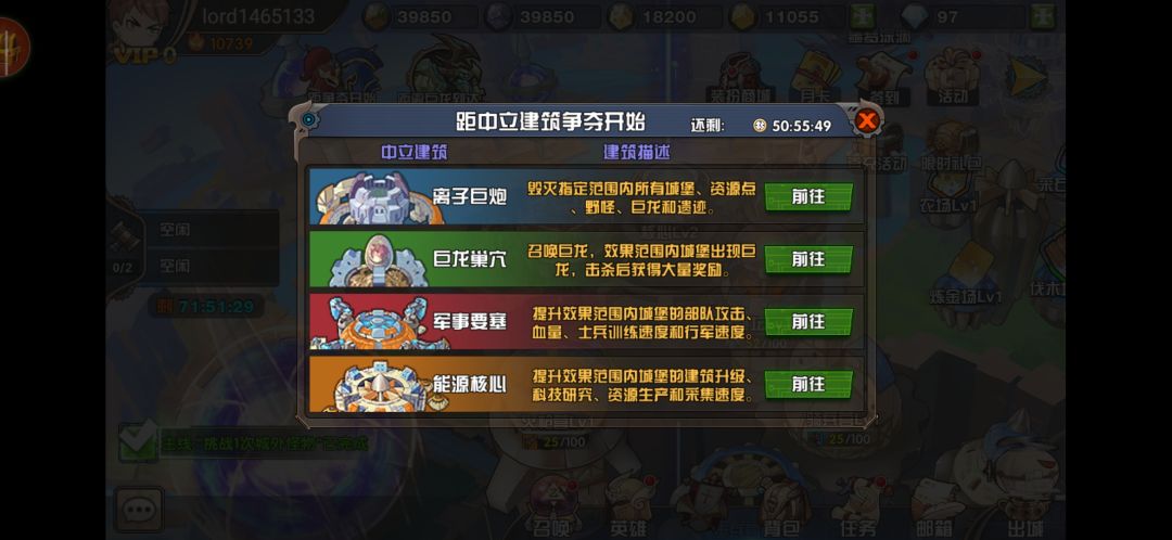 点击中立建筑争夺图标,我们就可以快速的进入进行中立建筑争夺战的界面了,在限定的时间内,通过对中立地点的占领和挑战,就能快速获得建筑的所属权了。