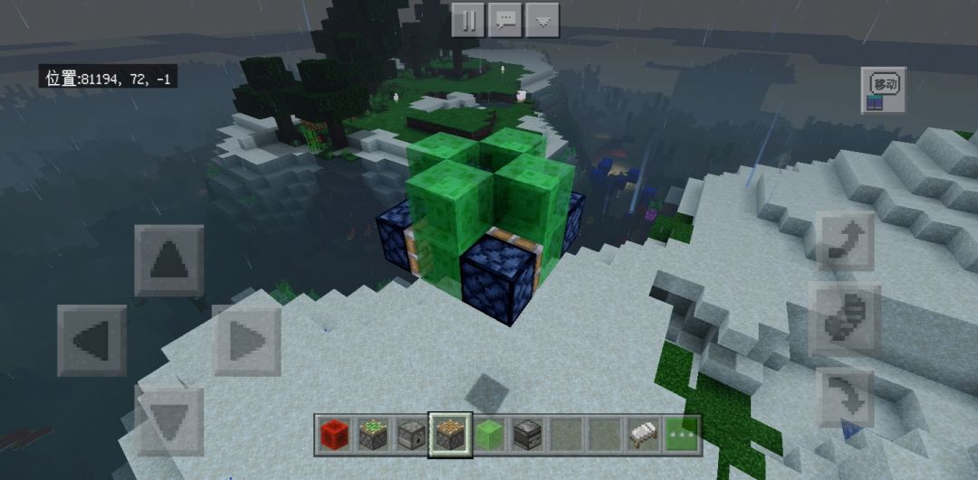 如果想搭乘,需要在中间的发射器前放置铁轨在利用矿车乘坐。