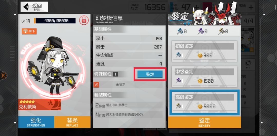 等你升星完成,幻梦核凑齐后就可以鉴定了,三个锤子随便你选,高级一点的鉴定出来的属性值区间大一点。因为我这只咸鱼也有pvp的梦所以鉴定一直都是洗速度的,如果喜欢pve的可以给输出洗攻击暴击爆伤什么的,奶妈洗生命。