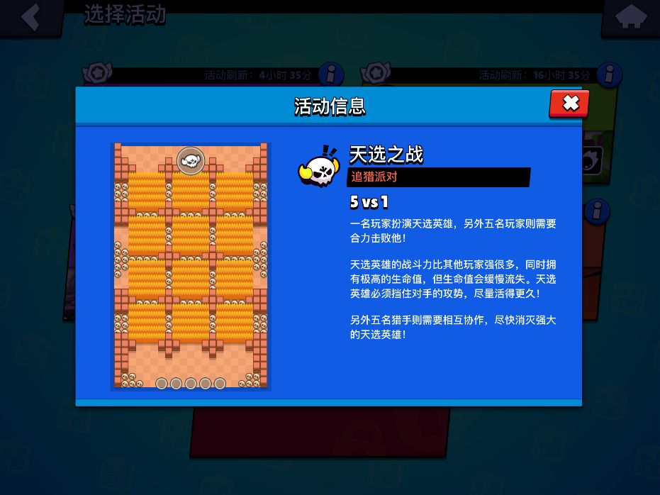 天选之战,是荒野乱斗里的一个周常活动之一,是一个5v1的非平衡性对抗,玩家会随机成为天选之人或者普通人,天选之人有更强的体魄对抗5个普通人。