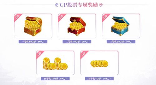 当CP投票结束后,我们将从为票数最多CP投票的玩家中,抽取幸运玩家,获取数量不等的Q币奖励。