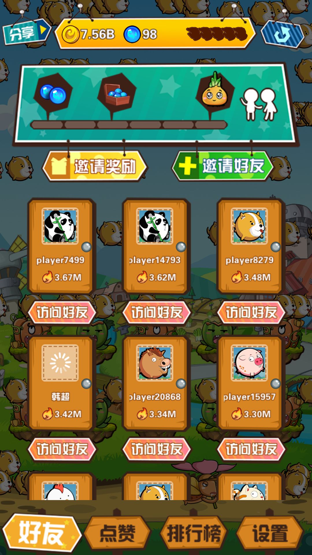 右上角显示邀请好友得到菠萝!??有什么用吗