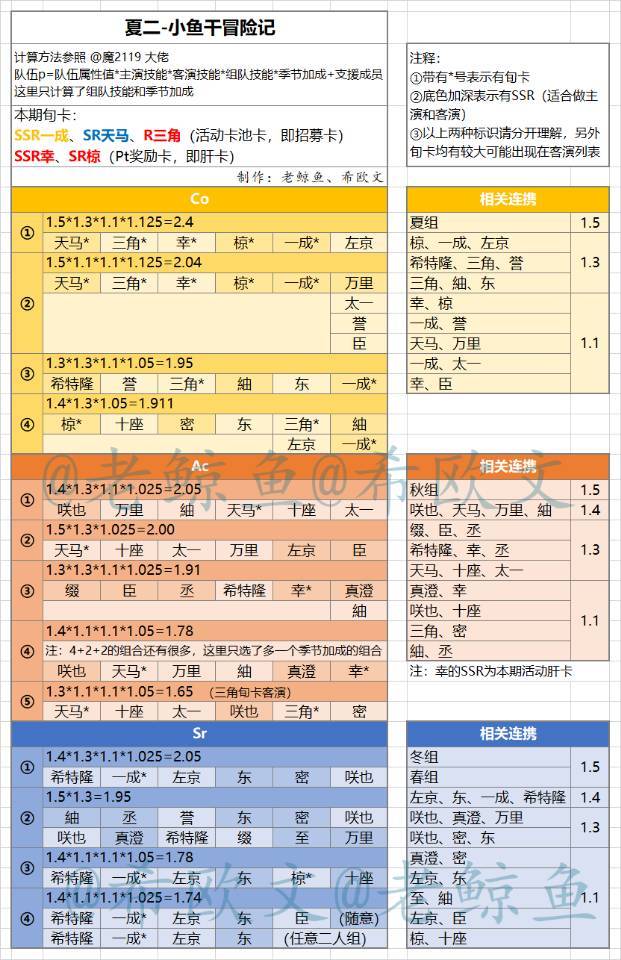 【组队攻略】夏二 小鱼干冒险记(大伙儿新表来了!)