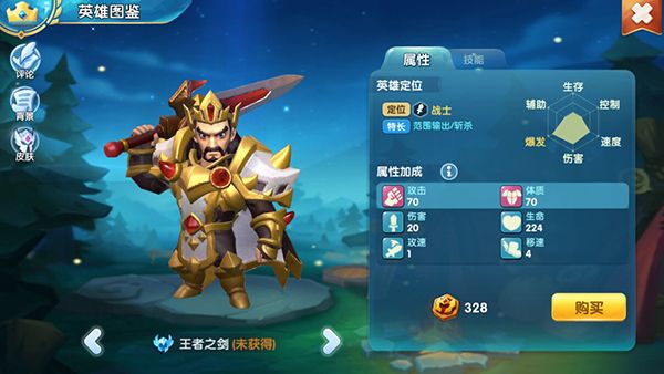 王者之剑:攻击最高的人族英雄,防御也是相当不错的,但是需要用的英雄之证很多,土豪可以考虑入手,普通玩家不建议购买