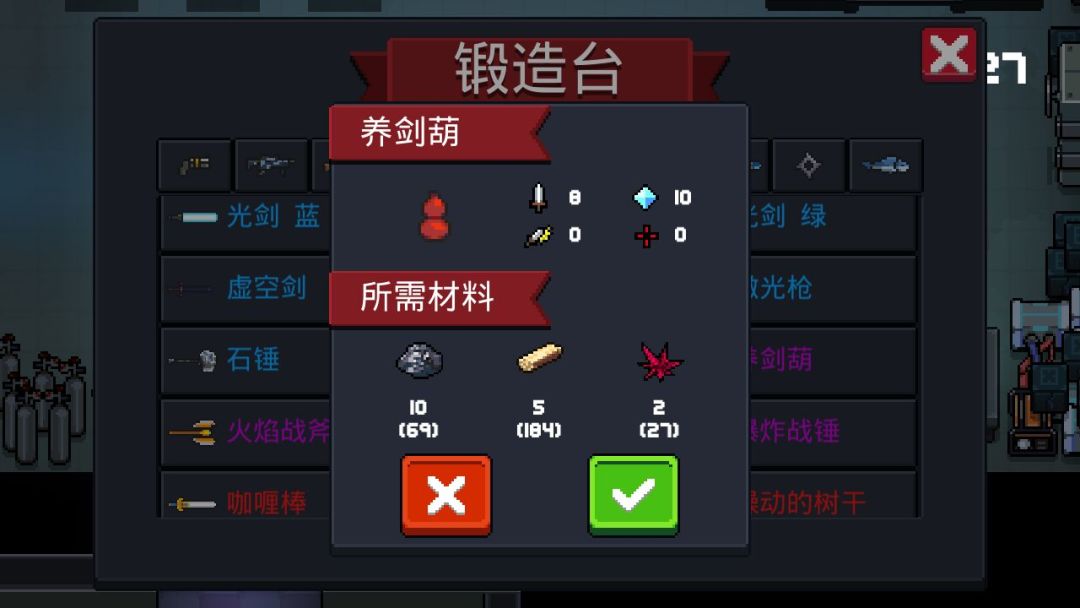 锻造材料:10铁矿,5木头,2红色魔法碎片