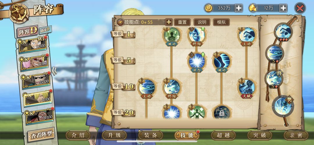 新世界山治的主要输出靠的是见闻感知状态下的第一个技能,但是新世界山治击杀角色后会解除见闻感知状态(会复活的除外),所以保证越多回合的见闻感知是关键,只要对位攻击的人物大于一人,优先放直线技能烧铁锅,如果造成击杀的话,再放终结技地狱之回忆,如果对位人数只有一人,且是会复活的人物(黑胡子,新世界烟鬼,人妖王)就 必中+烧铁锅 ,如果不会复活直接 地狱之回忆 。
