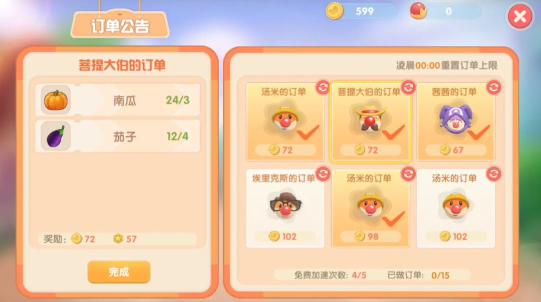 图3 比较值当的订单(南瓜茄子都是基础作物很快成熟)