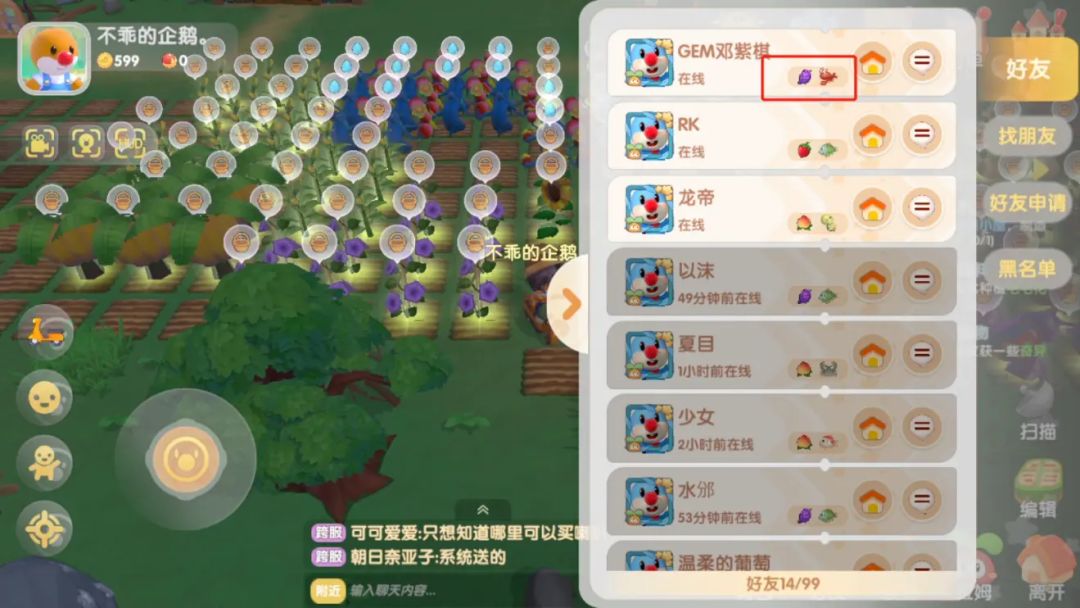 图5 红框内可以得知该好友的特产作物是葡萄和小龙虾
