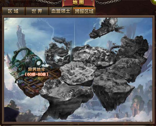 第四个分页就是“跨服区域”,点击跨服区域就会看到有异界地牢,地牢每天16:00至次日2:00.,玩家每天有3点疲劳度,每击杀一只地牢的BOSS将减少1点疲劳度。当疲劳度为0时,将无法获得任何BOSS的归属掉落