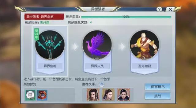 每次异世强者活动开启,道友们将要挑战的对象都可能不同。比如本次出现了异界剑枢、异界火凤、圣光僧侣三个首领,而下次活动就可能出现另外三个BOSS!每个首领拥有不同的技能特色,道友们可以慢慢探索,享受更多对战乐趣~