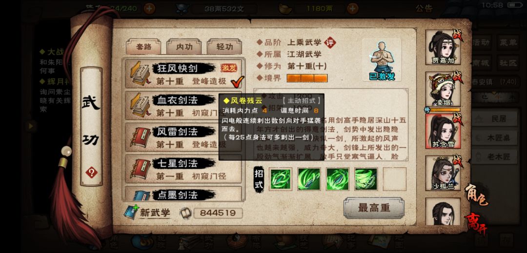 身法:每25身法多一剑,225身法最多10剑。这个一般都知道,还有就是速度越快狂风4技能有伤害加成。