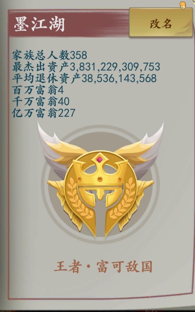 基本在50岁以前都已经有10亿了,剩下的想上万亿就去斗鸡吧,把握住宴客里的小飞侠和江湖骗子,最后大赌的时候才整青蛇和狐妖,上了万亿想卡999的,就单边用祈福消耗钱,快到数量的时候就去另外一边用和花酒来消耗,假如多了就卖产业。