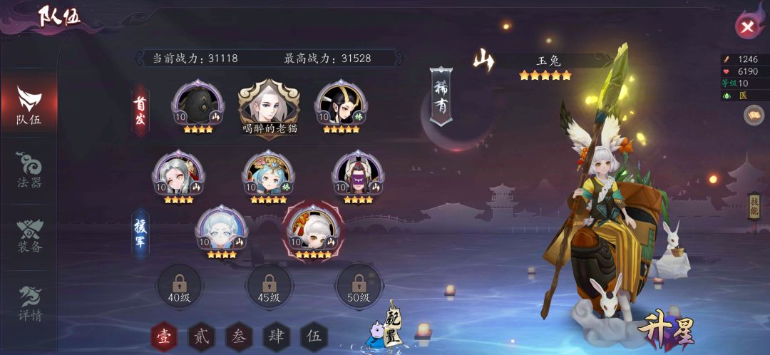 说实话玩到有点迷茫了,虽然我玩山没有小白和麒麟,但是我还是玩到很开心,主角2级天罡神将,马上3级,附带两个林2级龙吉公主和洛神。但是感觉对现在的阵容优点迷茫啊!不知道是不是继续这样还是换一下,大神帮忙看看。