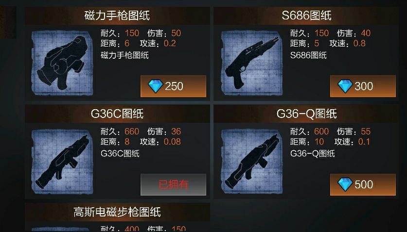 6.高级武器图纸:钻石足够多的情况下最好在商城解锁一种以上的高级武器图纸,制造出高级武器后尽量多准备一些弹药。高级武器伤害和耐久相对较高,杀怪物要轻松一些,但需要一定的等级才能制造而且制造成本高。不管用什么枪在战斗时都可以先把小怪分开秒掉,再去击杀boss级别的怪物(尽可能节约耐久),注意不要让怪物成堆锁定你,尤其是“狂暴露丝”(高生命值、高伤害)。