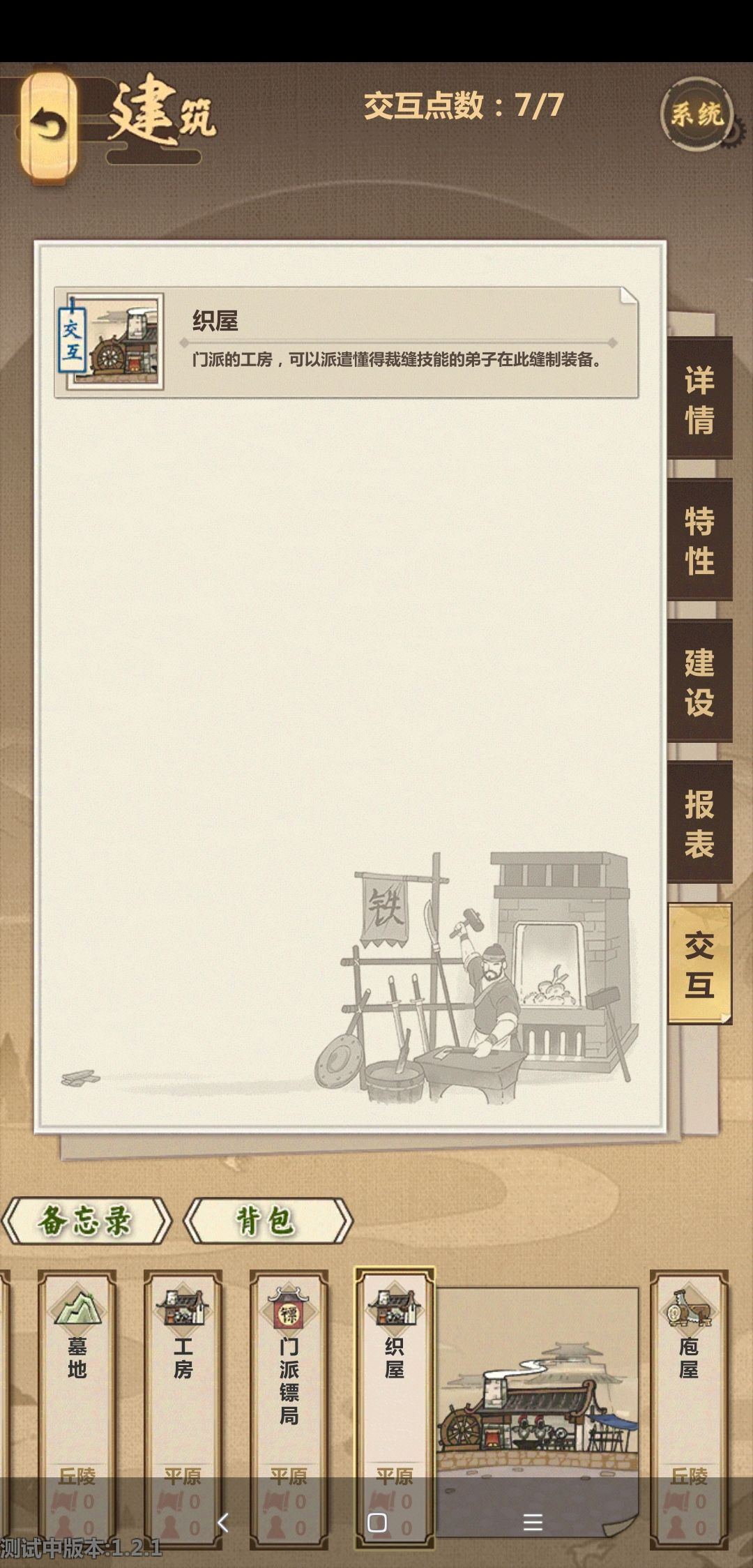 建议松鼠可以在工房药堂织屋庖屋这些地方留一个常驻的位置,每次做东西都得找人 而我真的记不住,而且做完一个就又得重新选很心累,建筑之后的扩建可以多放个差事