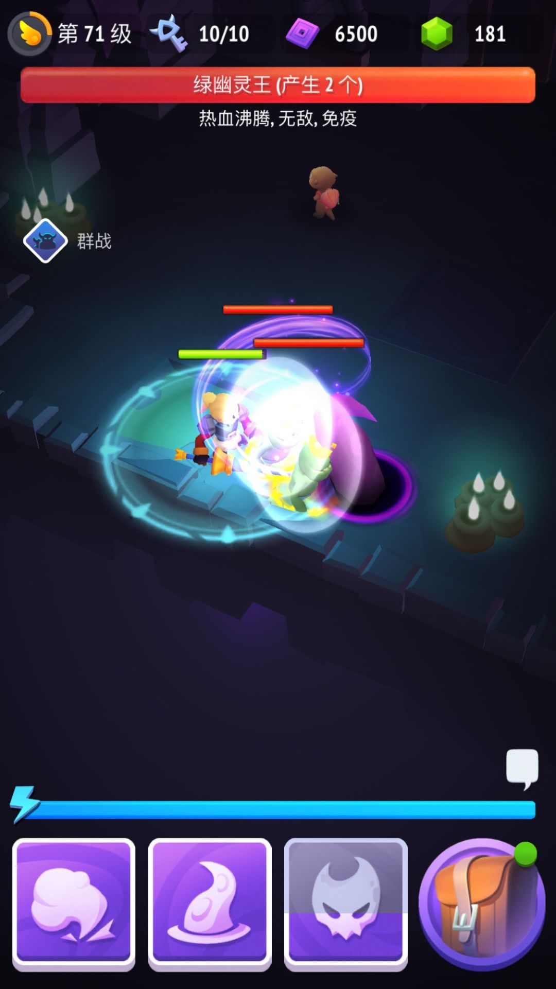 征服,最后一关,关底Boss,绿幽灵王,没法打,试验了所有的技能,天赋,没伤害,他也不打你,你也打不了他。无敌bug啊。