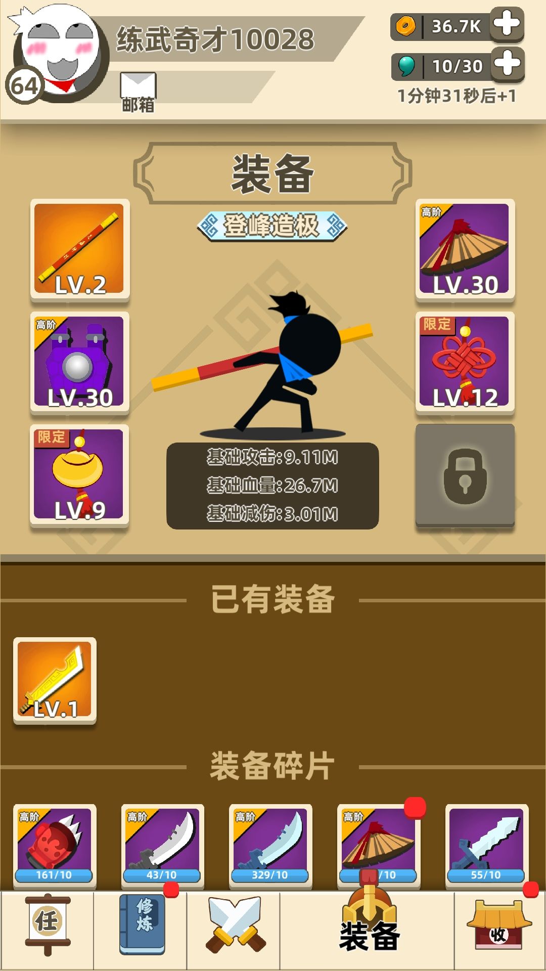 刚做出来金箍棒和屠龙刀衣服和帽子也快了,刚刚过了河西走廊,每天体力广告看满,体力刷光,任务全做,达叔换碎片从此走上人生巅峰,再过1周左右衣服帽子预计全出,倚天剑和方天画戟还有锤子不着急慢慢做就行,附带一段天山开荒视频感觉还行打到20关了慢慢升功法吧