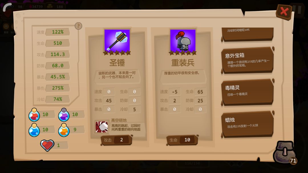 114点攻击,锤子蓄满力固定三倍伤害,再加上275%暴击效果和45%暴击率,再加上额外50%火属性伤害,一锤下去简直毁天灭地