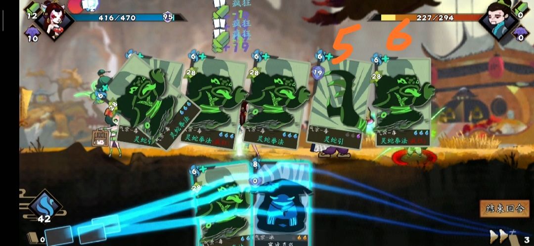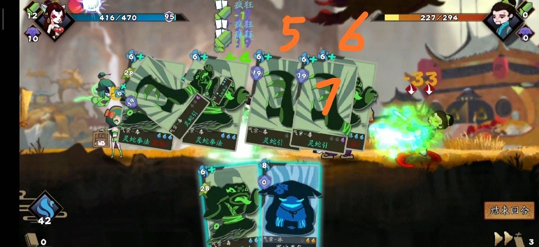 加上手动出牌顺序:灵蛇拳法 灵蛇引 灵蛇拳法 灵蛇拳法 灵蛇引 灵蛇拳法(疯狂) 灵蛇拳法 灵蛇引 灵蛇拳法(疯狂) 灵蛇引 灵蛇引(疯狂)