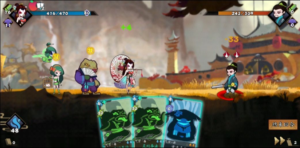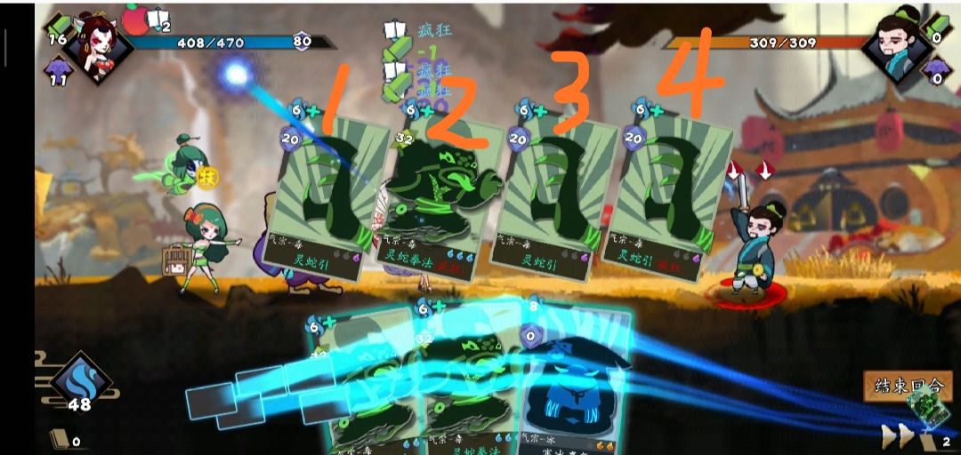 手动出牌:灵蛇拳法→灵蛇引→灵蛇拳法以下为打出效果
