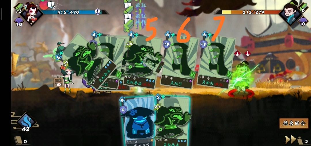 首先我做了些测试(以下测试均在只有灵蛇拳法与灵蛇引两种毒牌时进行):