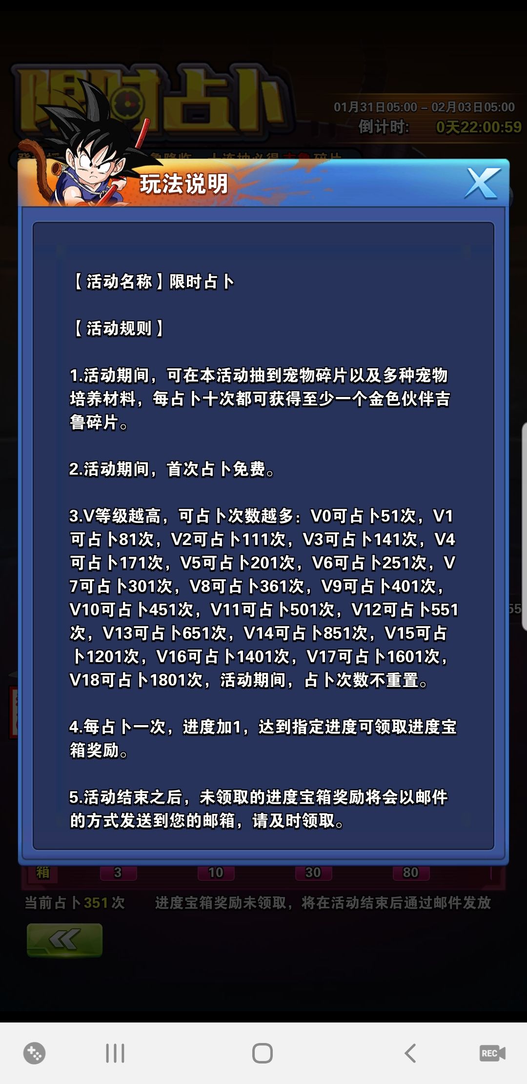 例如:V10想拿5星宠,龙石足够3次抽满(保证满猫),得到351左右碎片,不充198的情况下,到3限结束共需要准备289左右宠物万能5星。