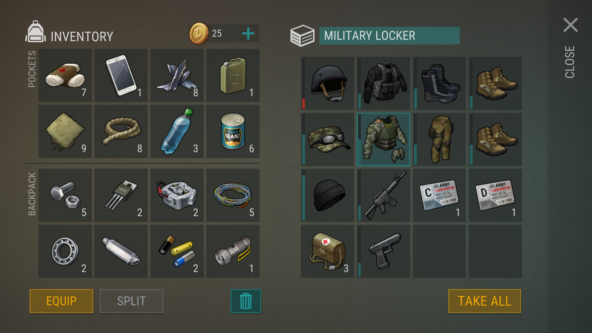 这两张则是打通后的补给品(我已将所有箱子里的集中为一起,菜刀是自带的),奖励挺丰厚的,自然,毕竟里面有僵尸,不过这和A基地一样,至少要两次才能全部运完。那么我就简单介绍到这里,其他的你们可以自己尝试一下,截图截的不好,请见谅!