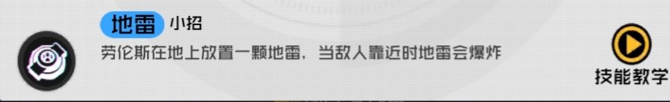 劳伦斯最强力的技能,对战局影响非常大,一位优秀的劳伦斯地雷绝对是必修课之一,伤害非常非常高,并且还有减速与透视效果,但是因为特殊红边的原因使得地雷非常显眼,要想用好这个技能得有一定的技巧与小小的思考。