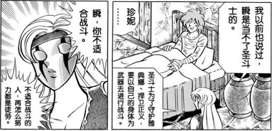 起初看着瞬在训练时一次次的倒下,珍妮心疼这个看似柔弱的少年,告知他并不适合战斗并劝他早日放弃离开岛屿。也许有小伙伴批判她阻止瞬想要守护雅典娜和正义的征途,但珍妮何尝不是一直把瞬放在心中最重要的位置,她何尝不是一片苦心?