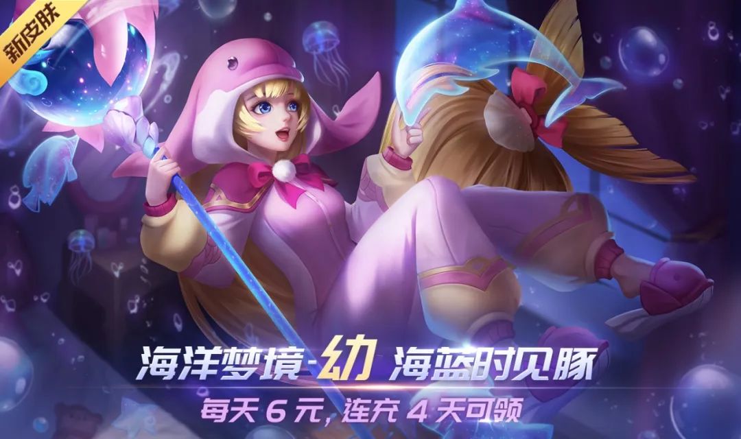 1. 新皮肤连充得:4月8日-4月14日,每天充值6元,累计充值4天即可获得新皮肤【海洋梦境-幼】;