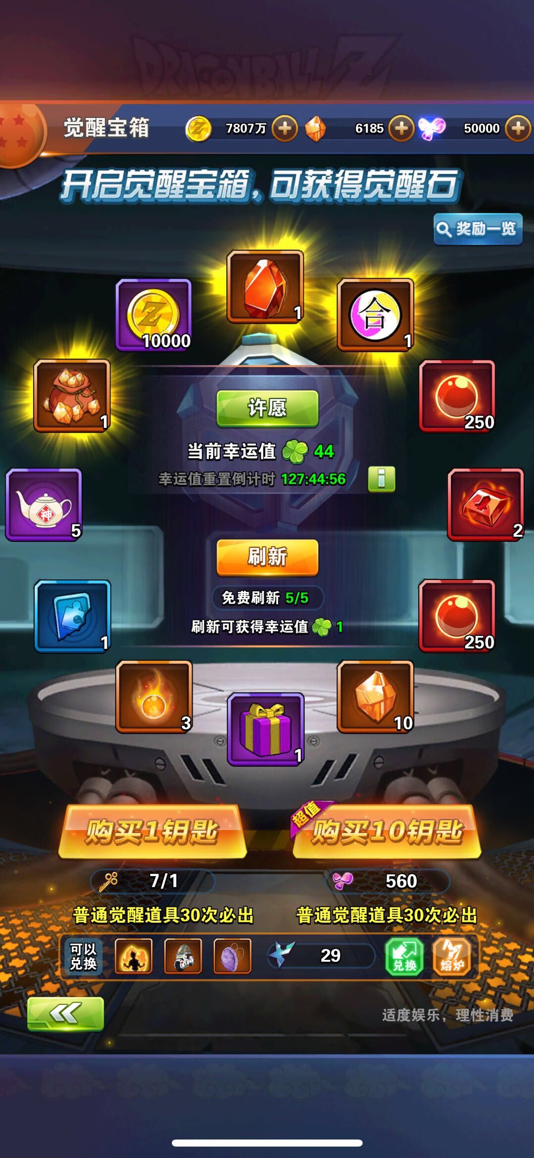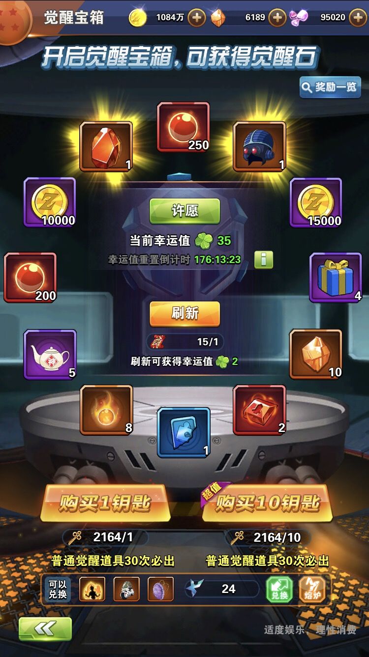 如果刷不出这种界面也没关系,等你刷完刷新卷后,你的🍀也够多了,如果界面有龙石袋和觉醒石,就许愿换成需要的觉醒道具