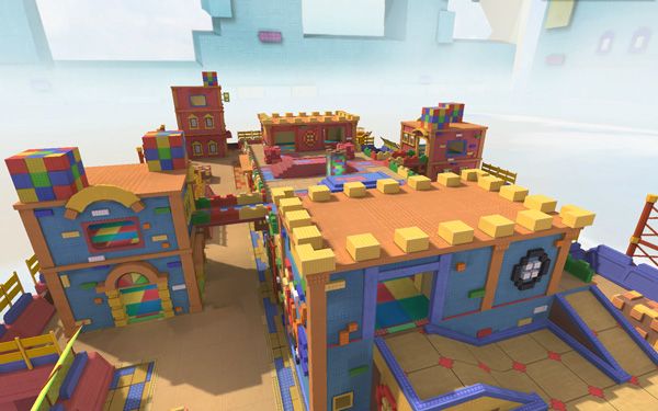 “狂想积木城”是一张充满幻想的PVP地图,目前支持经典团战、大头英雄、终极大头、刀锋战士、刀战无双以及特殊--狙战几个模式。在大头模式中,可以利用高楼以及掩体躲避大头王的追捕,造成反杀;在经典团战中,可以以上制下,取建瓴之势的策略获得最终的胜利;在刀战模式中,可以利用各种捷径发起意想不到的突袭;特殊--狙战模式中,更是可以利用各种掩体,躲避对方狙击手的视线从而进入对方阵营实行偷袭。再加上类似失重世界和梦幻城堡的画风,让玩家可以在游戏对抗之余享受这一份幻想。