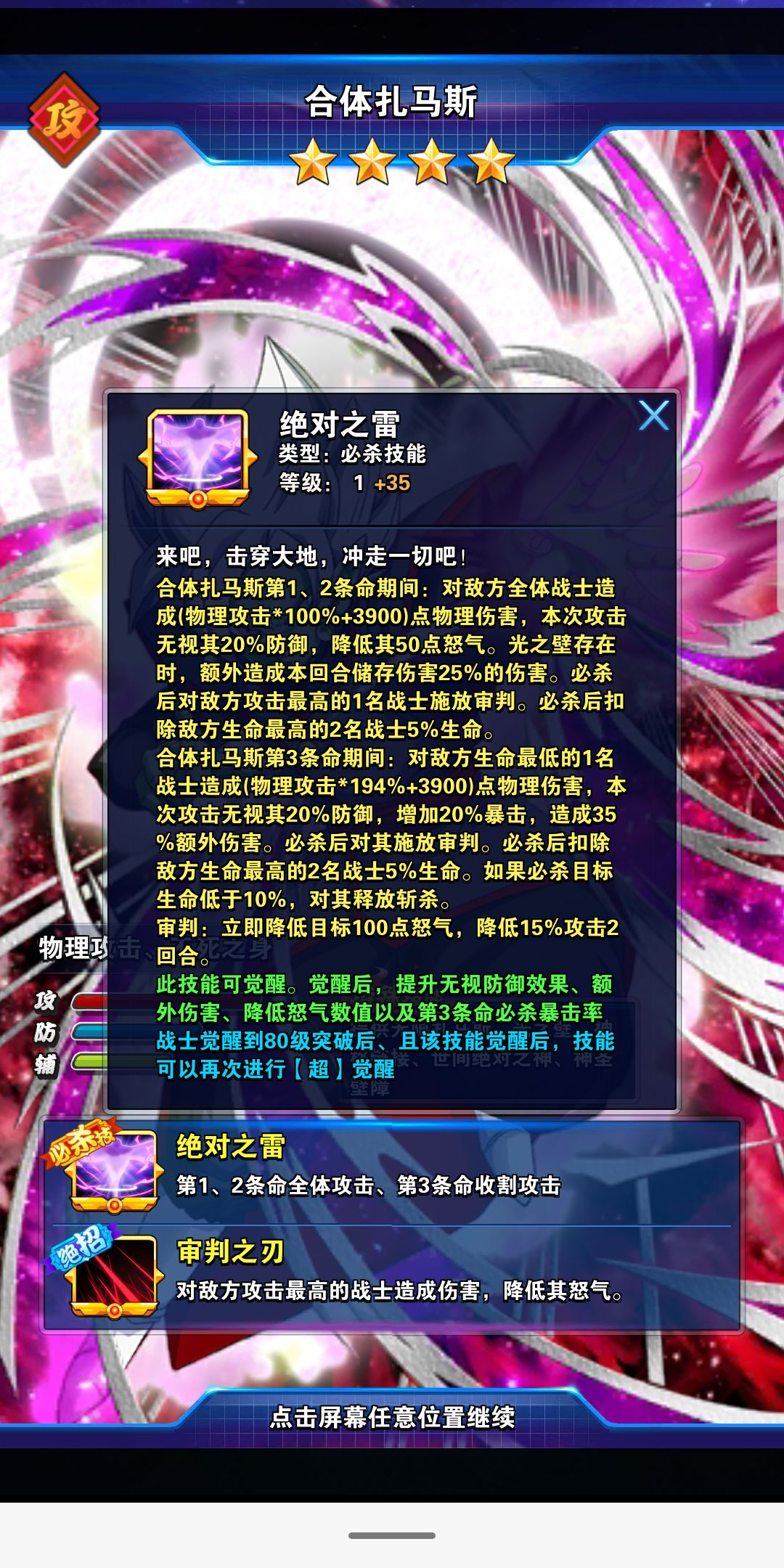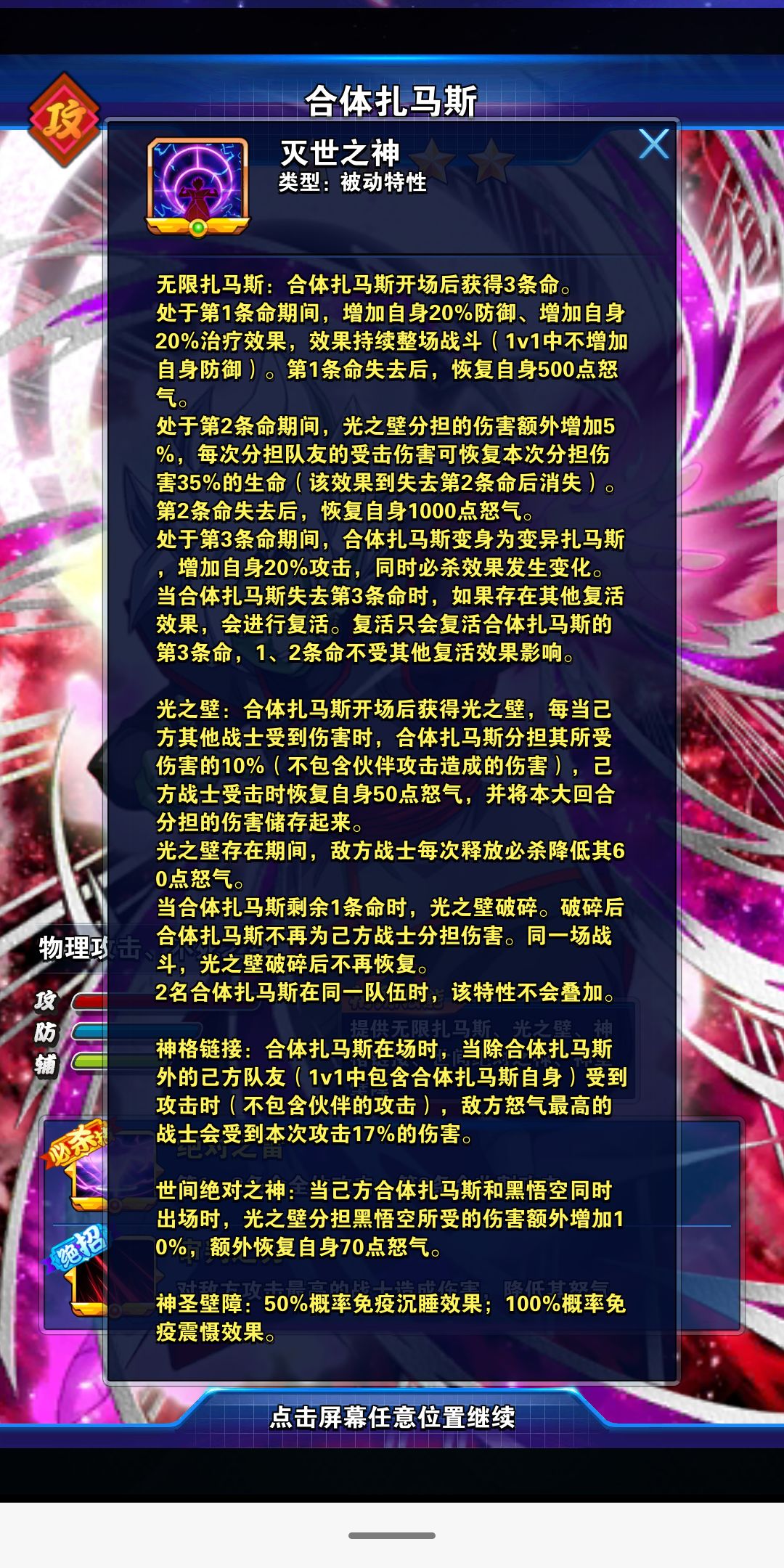扎马斯:储存队伍所受10%,必杀附带每回合储存伤害25%的额外伤害