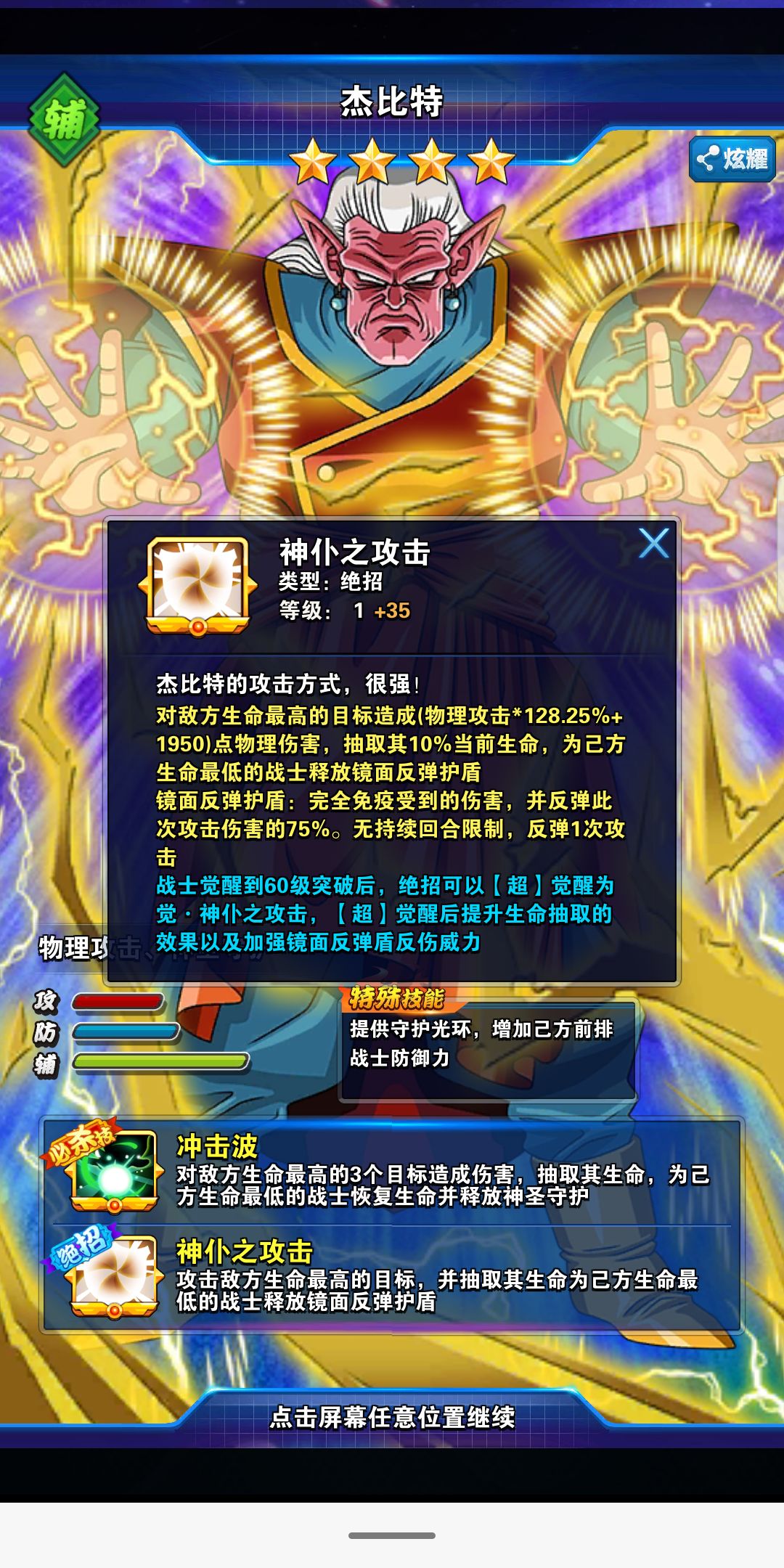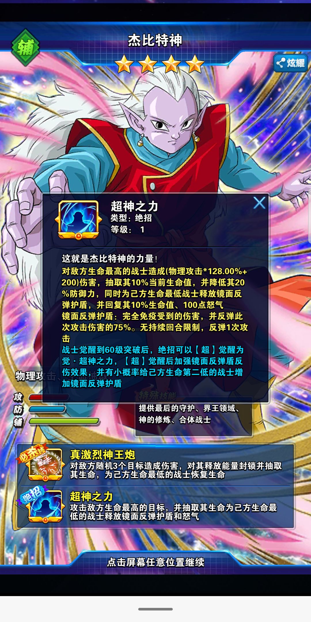 杰比特神:治疗+绝招附带75%反伤盾
