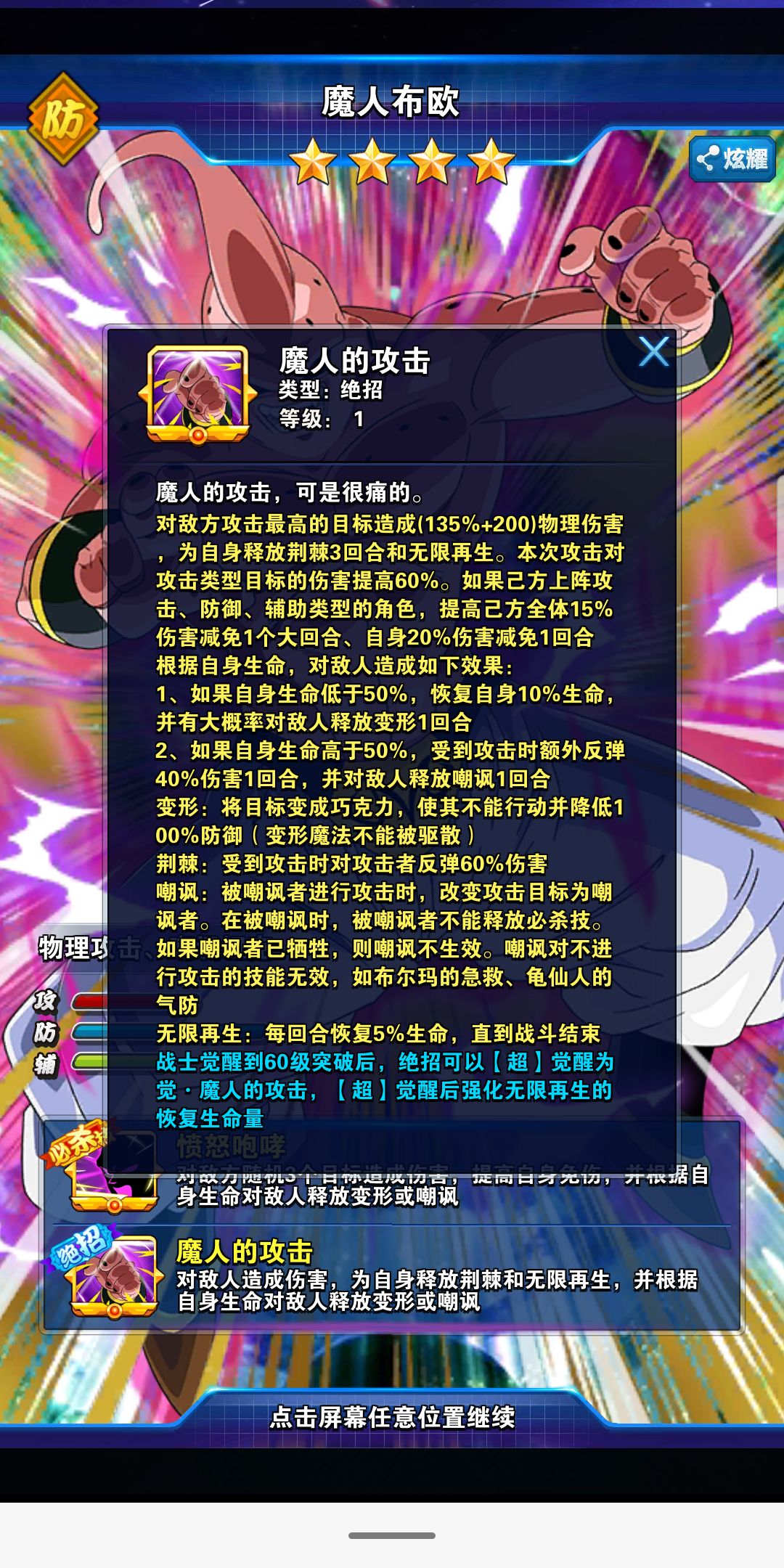 超越极限17号:第一回合10%反伤,第二回合15%反伤,第三回合20%反伤,生存较强