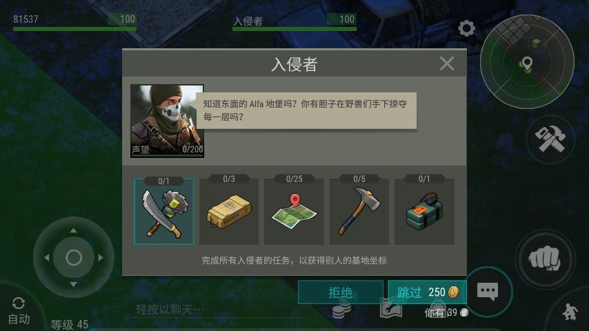 传播者:嗯,没错,看来你已经知道我来到目的了,我只说了哦。我可以给你接收者的精确坐标,但是你同样也会遭到侵略,这样,如果你完成以下任务,我将帮你拖延接收者在你之前侵略你的时间。