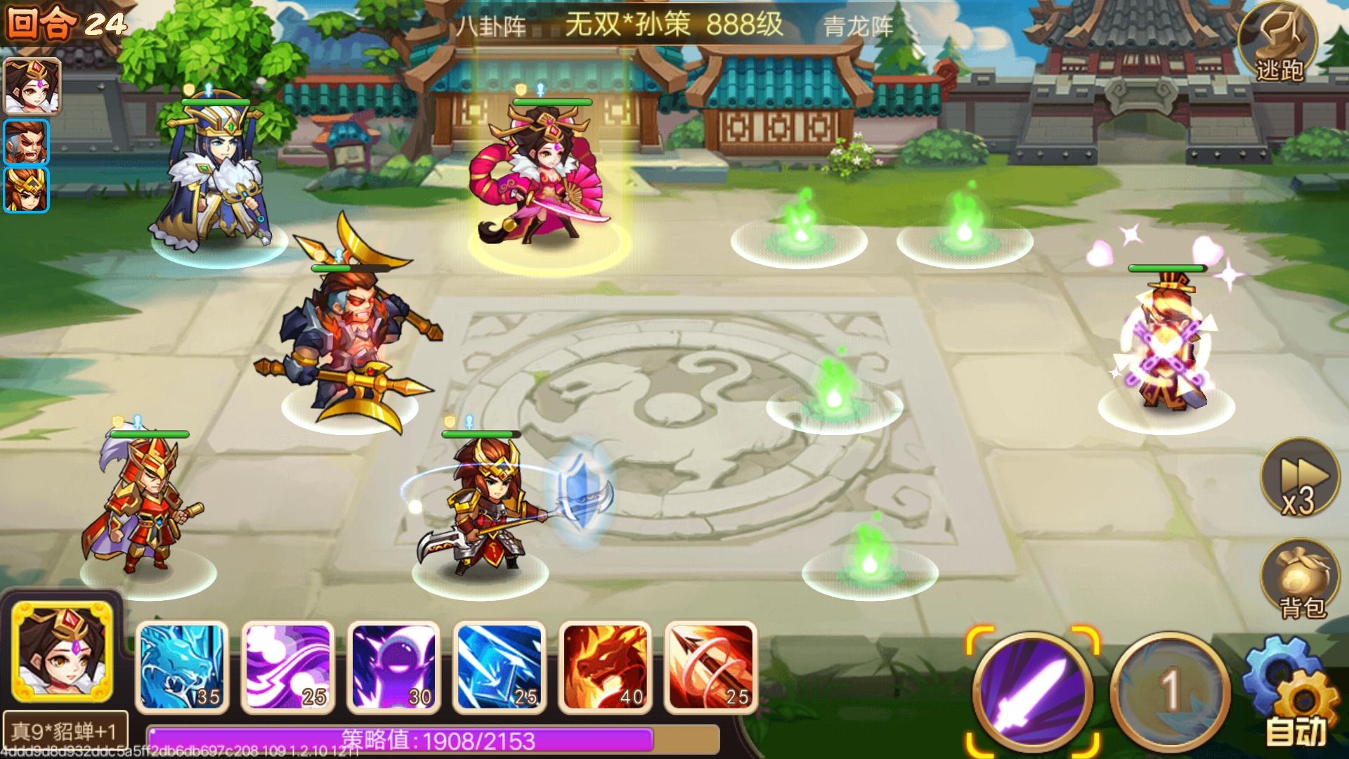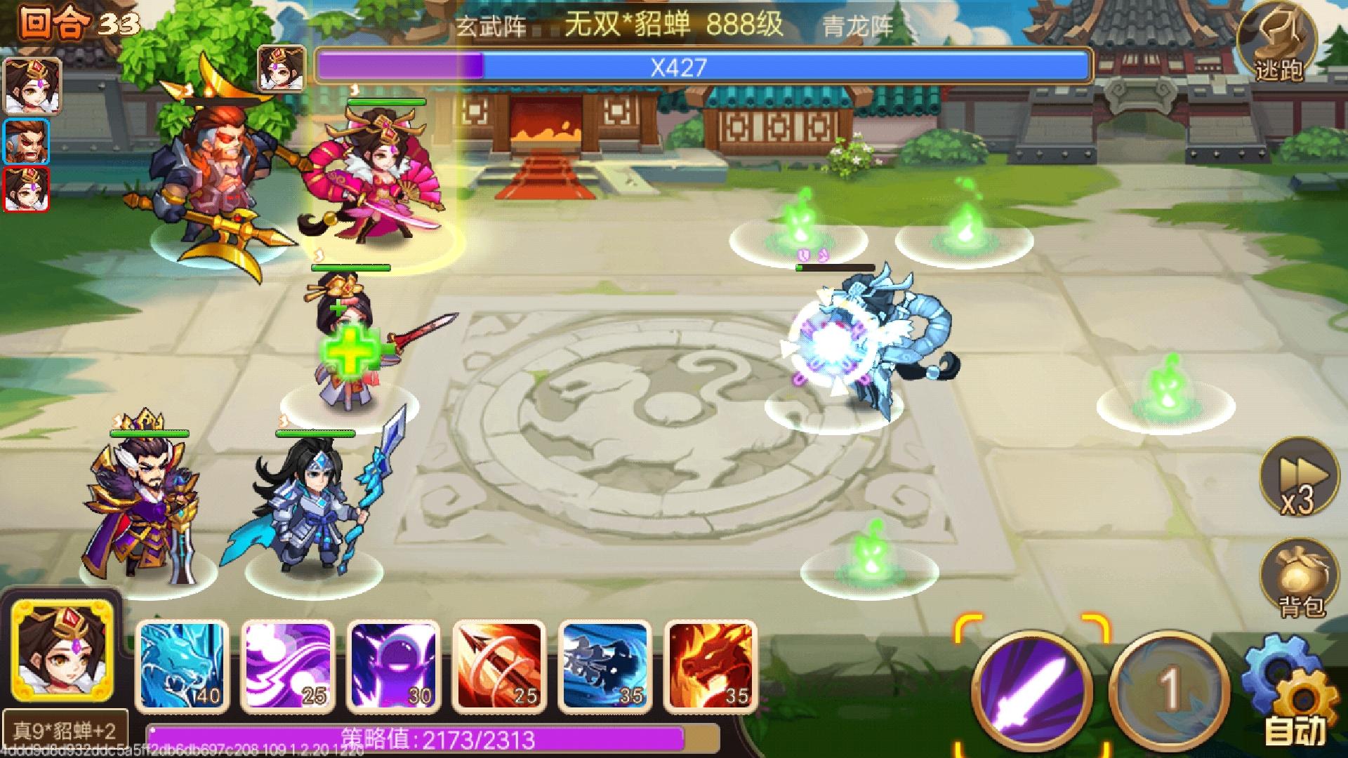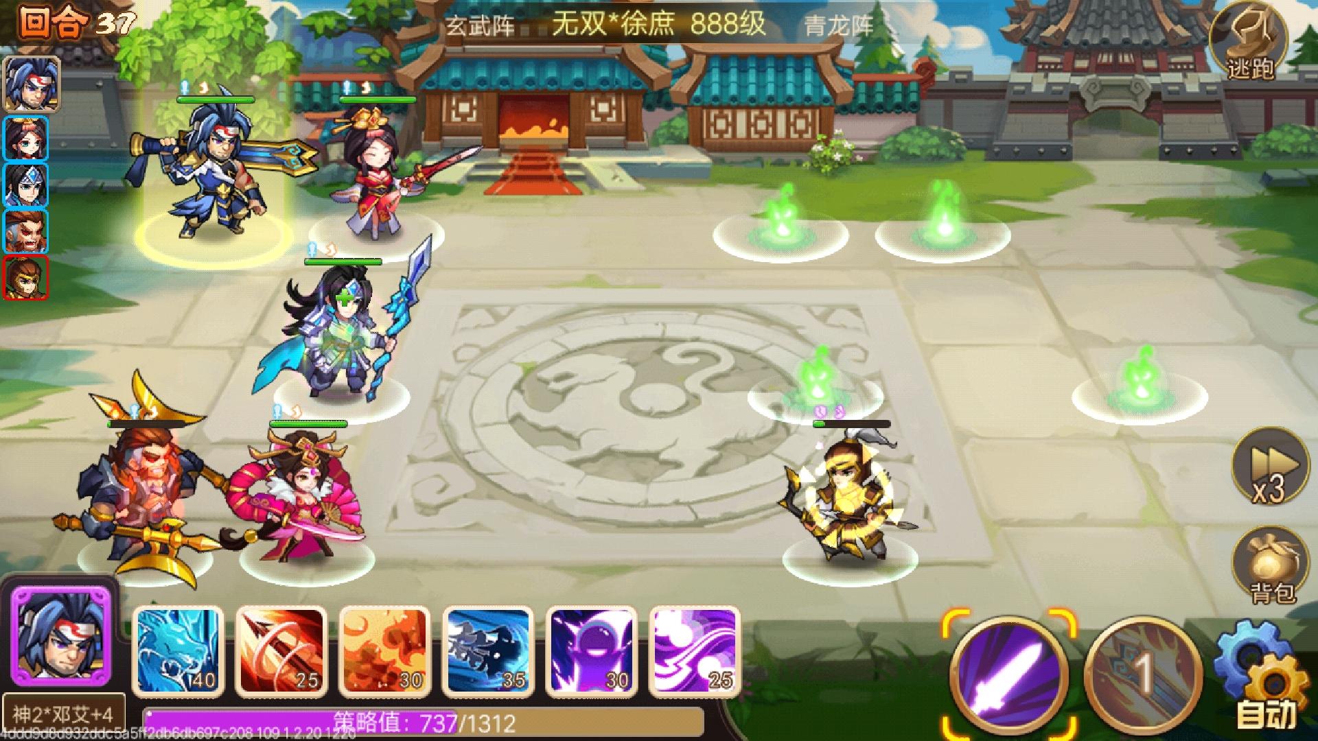 接下来就是右边三个,对于右边三个来说。最头疼的或许不是左慈和徐庶而是貂蝉。(可能因为我太菜了,可能运气也挺好)左慈我是一遍过,但是之前忘记截图又打了一次。徐庶就是偶尔打一打,思路就是按照168大神的速度流。貂蝉这里多说一句,用过反伤,用过玄武阵。反反复复的循环。每次都是运气差一点就过了被翻盘。最后忍住了要爆发的心思打过去了。她的每一个人都非常可恶。盔甲有小片刀。弓箭手有群。术士有清策,貂蝉有迷恋,所以用速度流玄武阵的时候尽量的全都冰住。冰不住盔甲就一定要封。在这上面吃过好多次亏左慈和徐庶基本上就是参考了之前大神的思路。不多说。满足两个要求就可以尝试过。全队速度4.9。典韦13.5以上越多越好。(白虎套典韦比英杰套多武力)至于玄武阵。我只有22阶。完全能抗住。