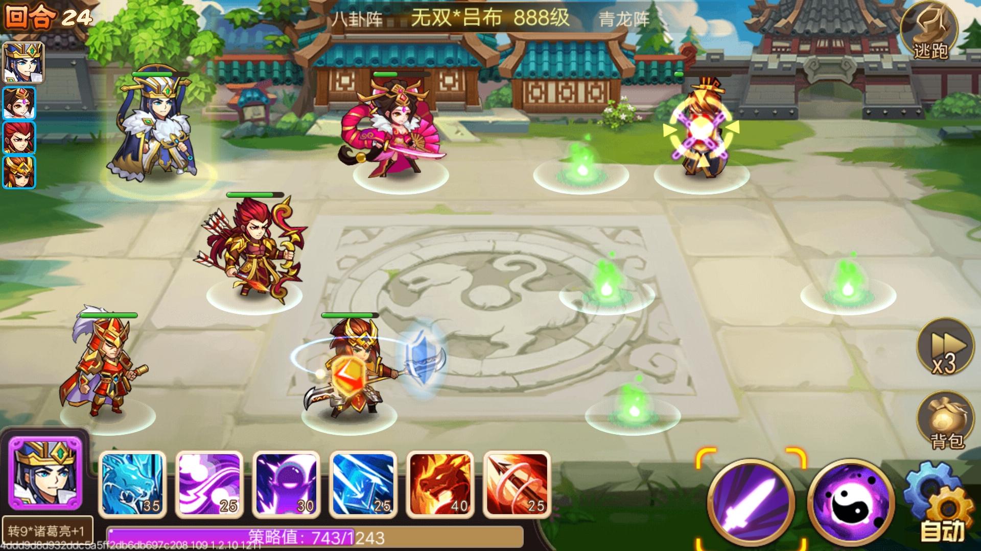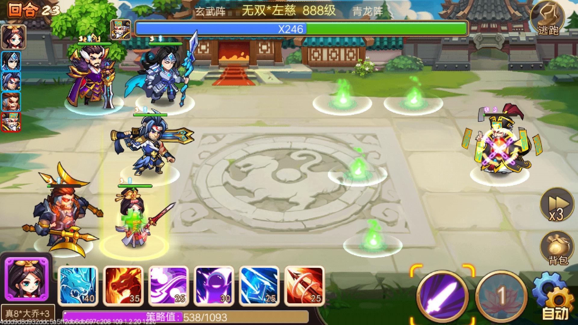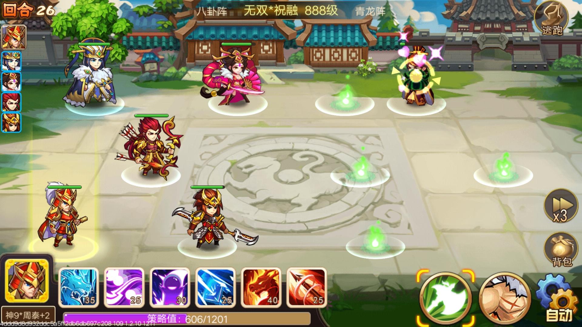 接下来就是右边三个,对于右边三个来说。最头疼的或许不是左慈和徐庶而是貂蝉。(可能因为我太菜了,可能运气也挺好)左慈我是一遍过,但是之前忘记截图又打了一次。徐庶就是偶尔打一打,思路就是按照168大神的速度流。貂蝉这里多说一句,用过反伤,用过玄武阵。反反复复的循环。每次都是运气差一点就过了被翻盘。最后忍住了要爆发的心思打过去了。她的每一个人都非常可恶。盔甲有小片刀。弓箭手有群。术士有清策,貂蝉有迷恋,所以用速度流玄武阵的时候尽量的全都冰住。冰不住盔甲就一定要封。在这上面吃过好多次亏左慈和徐庶基本上就是参考了之前大神的思路。不多说。满足两个要求就可以尝试过。全队速度4.9。典韦13.5以上越多越好。(白虎套典韦比英杰套多武力)至于玄武阵。我只有22阶。完全能抗住。