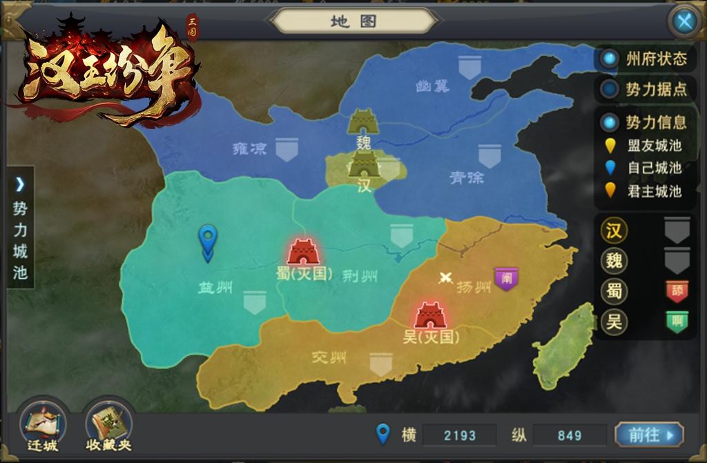 在群雄混战的《汉王纷争》里,想要称霸一方,除多积粮,缓称王,收取民心发展势力外,还要有不记前仇的远见卓识。王城战后,本国内的势力可以攻打其他国家境内的据点、小城、州府、王城,直至对方灭国。