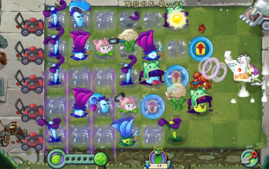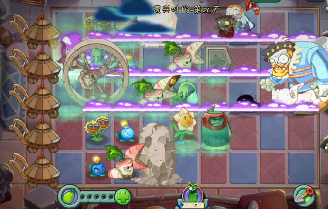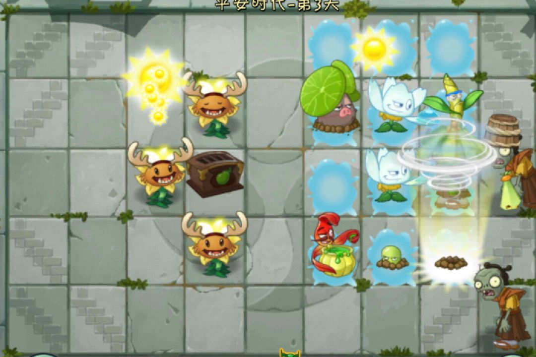 2.空中战场:天空之城只有三列可以种植地面植物,大部分只能种植空中植物。