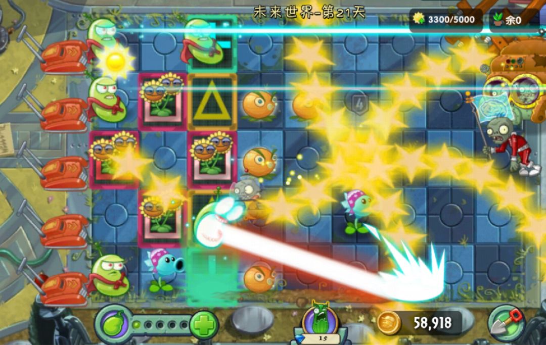 2.超能瓷砖 :地图上分布着不同颜色的超能瓷砖,当对一个瓷砖上的植物使用能量豆时,其他位于同色瓷砖上的植物也会发动大招。