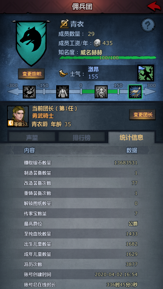 本来可以早点达成全尊敬的,节约成本,之前结婚都没有买材料。300小时之后,想尽快达成全尊敬,便疯狂购买材料结婚,财富值掉了160W,不过从4尊敬变成9尊敬还是值得的。大家可以看下我300小时的记录贴