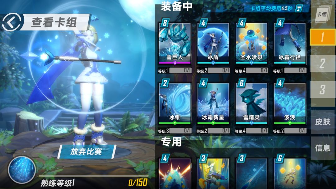 固定的五张卡组 冰盾 冰霜行径 冰霜新星 波浪 雪巨人。