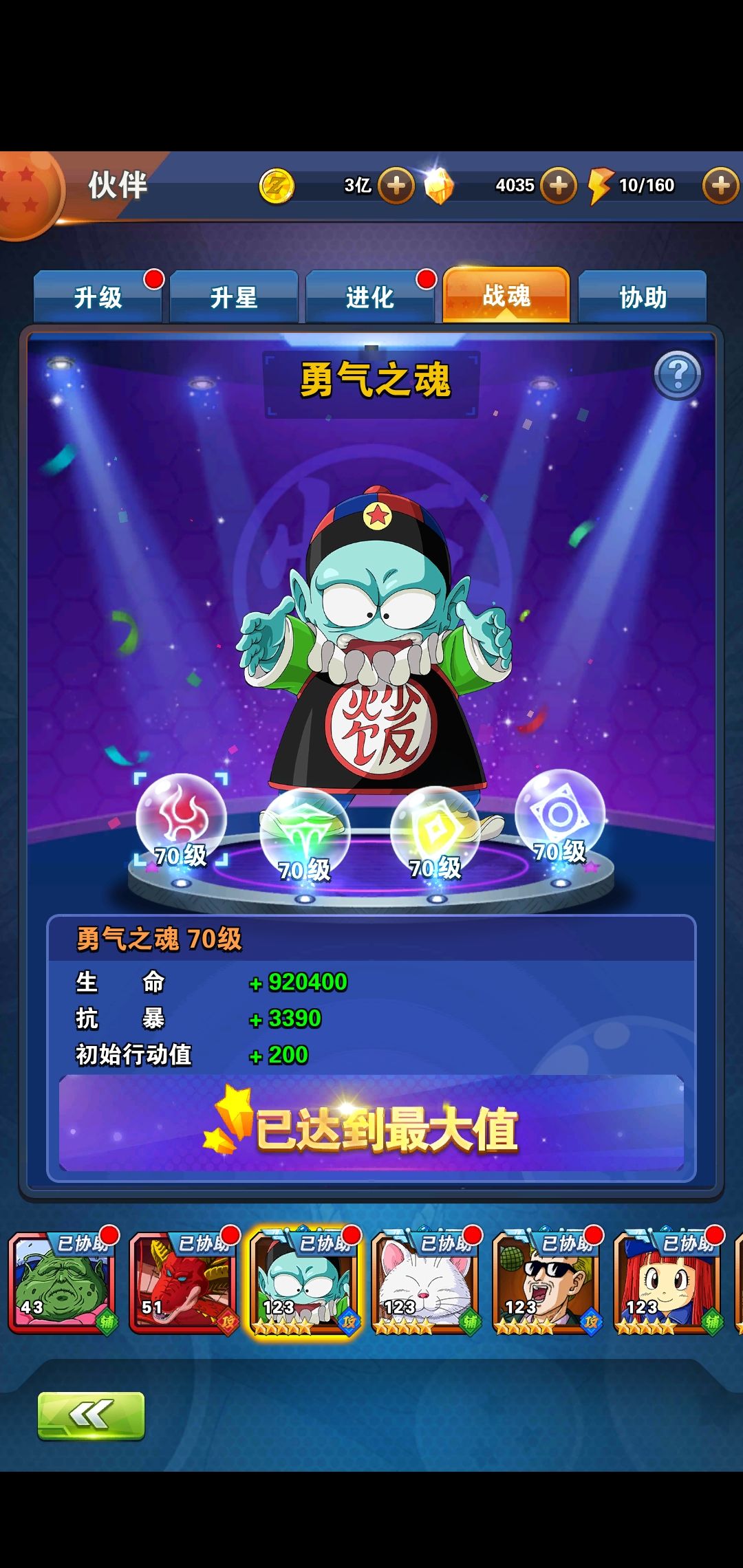 除了出战宠物建议大家养5到6个羁绊宠物,阶级建议升级到18到24,战魂全部点满,可以给战士提供巨额战斗力哦,最后祝大家2020龙珠快乐。
